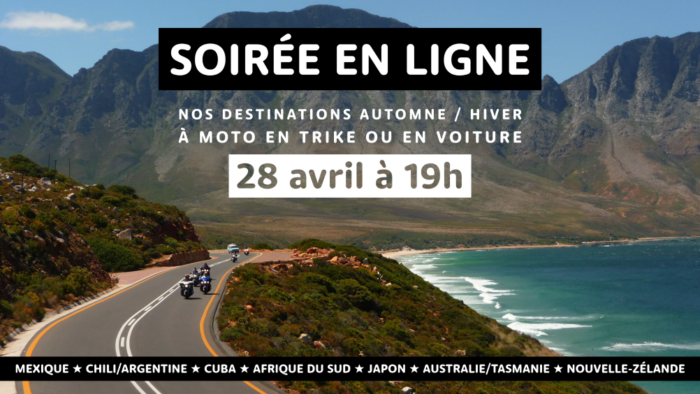 Vous avez été nombreux à participer à notre soirée information en ligne dédiée aux roadtrips aux USA ! Comme l’a annoncé Fabien en direct, durant ce dernier live, nous organisons une prochaine soirée en ligne pour tous nos circuits hors USA le vendredi 28 avril à 19h.*1